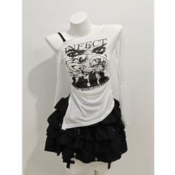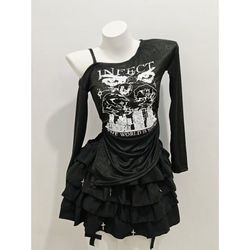 Conjunto de falda gótica oscura para chica Sexy, conjunto de dos piezas para mujer, Top y falda de otoño con hombros descubiertos, Top de protección solar + falda abombada negra cruzada