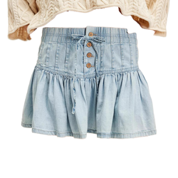 2025夏季凉爽新款迷你裙折叠裙高腰褶裥牛仔布复古a线休闲风格